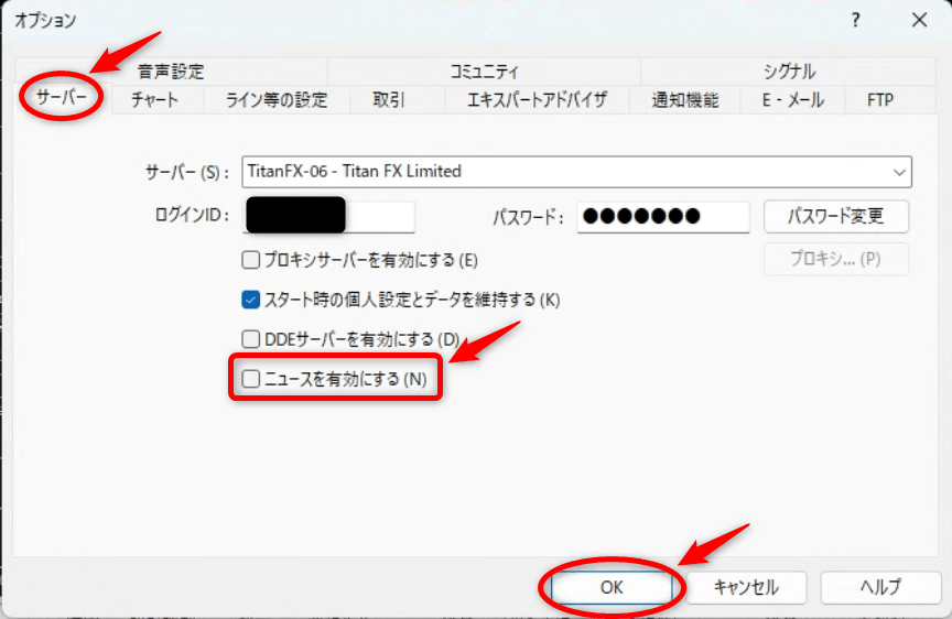 全く見てない、もしくはEA常時稼働であれば、設定でオフにすることでメモリへの負担を軽くできます!「サーバー」タブの「ニュースを有効にする」のチェックを外しておきます。
