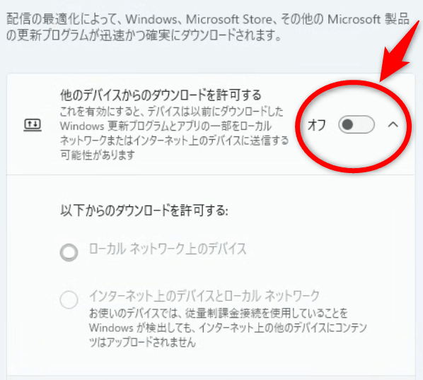 Windows Updeteの「他のデバイスからのダウンロードを許可する」をオフに!