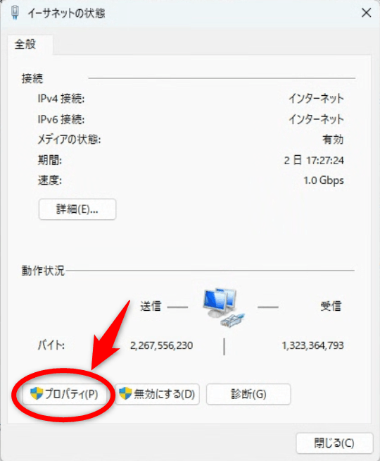 「プロパティ」をクリックします。