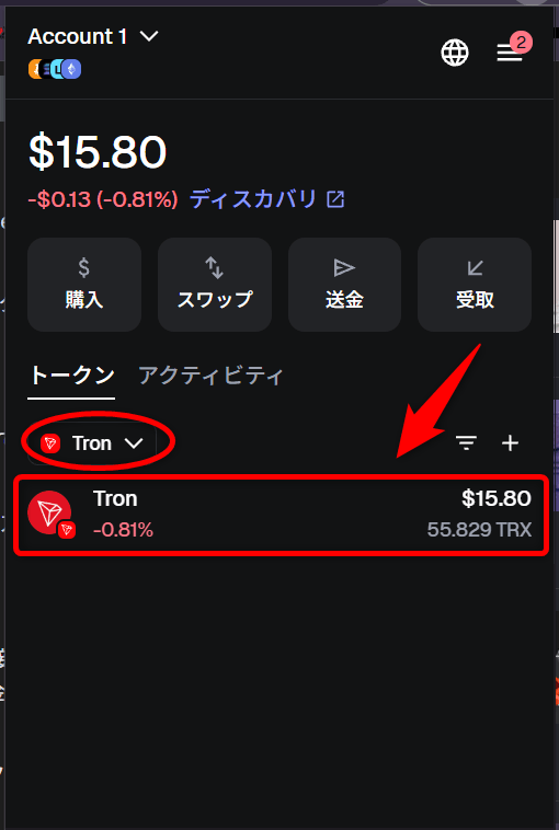 この方法はまずいと思い、ちょうど2026年1月からメタマスクでトロン(TRX)を使えるようになったのもあり、これならガス代の高いイーサリアム(ETH)よりも安く送金できるかもと思って2を試してみたところ・・・(次へ続く)