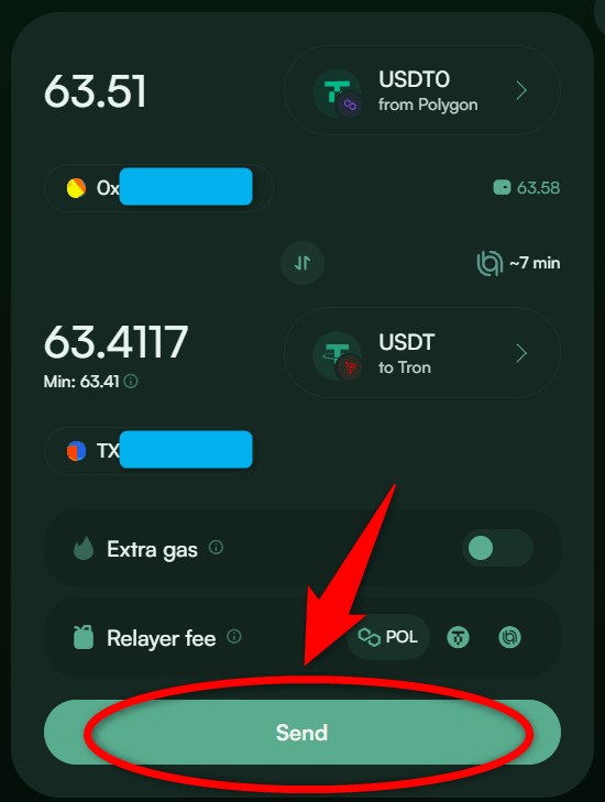 一応AllbridgeというサイトでUSDT(ポリゴンネットワーク)⇒USDT(トロンネットワーク)のブリッジができることは確認済みなのですが・・・