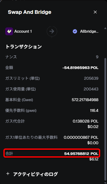 ちなみに、イーサリアム⇔ポリゴンのブリッジはAllbridgeでもできますが、Across Protocolを使った方がガス代は安く、本記事でもAcross Protocolを使ってブリッジしてるところを掲載しています。