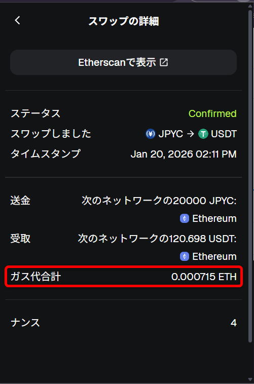 【要注意】イーサリアムのガス代(特にJPYC⇔USDTスワップ時)は高い!