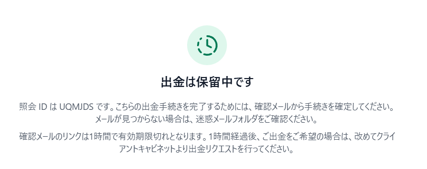 「出金は保留中です」の表示と同時に「Titan FX:出金リクエストの確認(確定ボタンを押してください)」という件名のメールが届きます。