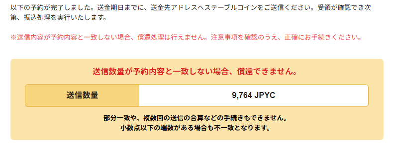 今回三井住友銀行から入金し、約10分後にはメタマスクでJPYCが反映されていました。