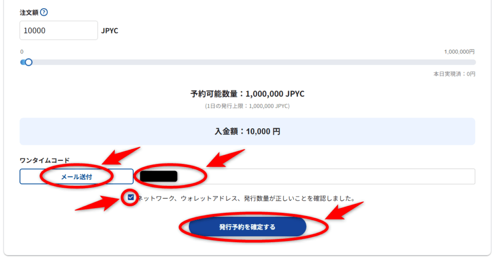 JPYC発行(メタマスクへ入金)