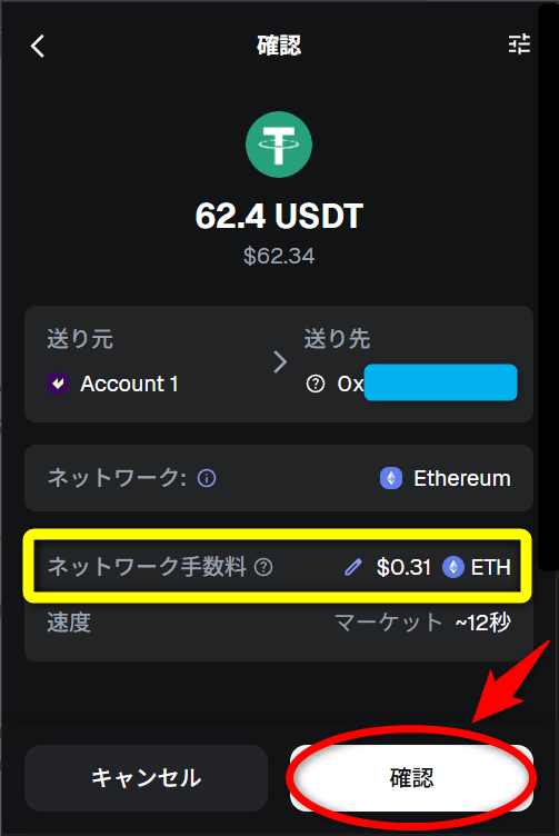 メタマスクからUSDTを送金(時間帯によってガス代が大きく変動するので注意!)