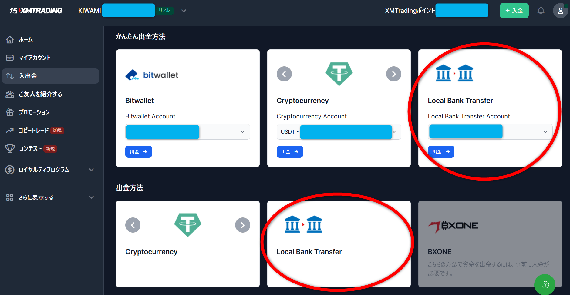 XM出金方法・国内銀行送金